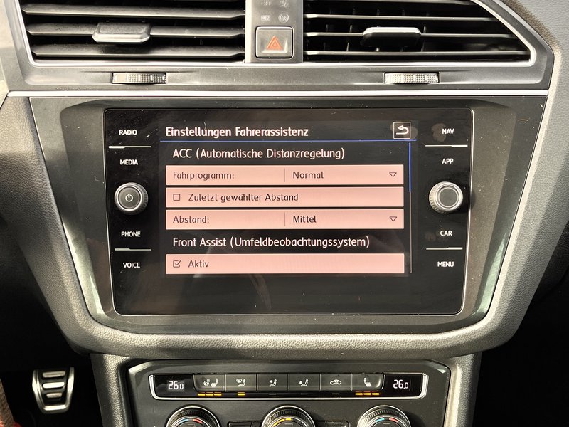- Fahrassistenz-System: Autom. Distanzregelung (ACC) mit Umfeldbeobachtungssystem (Front assist, bis 210 km/h)